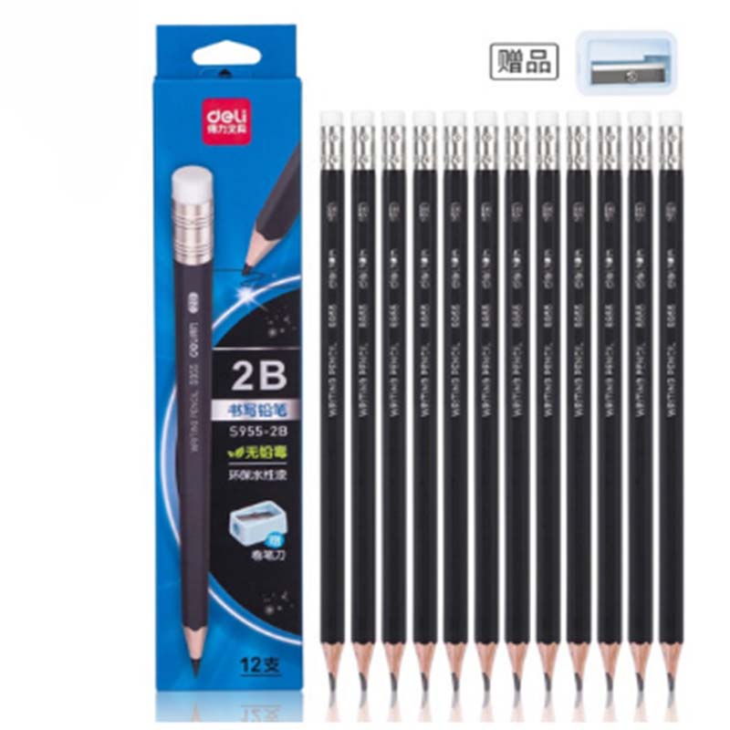 得力 S955-2B_黑杆办公皮头2B铅笔(黑)(12支/盒)(单位:支)