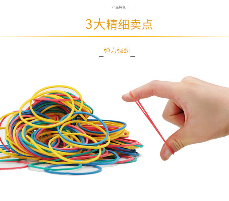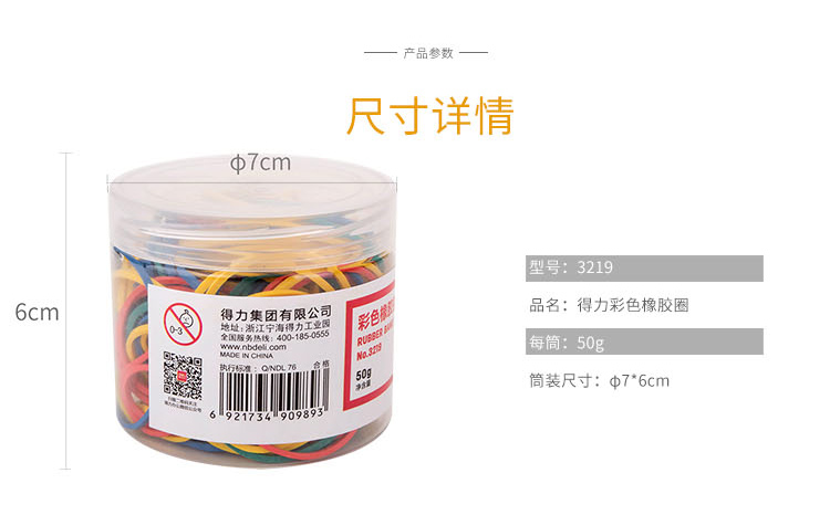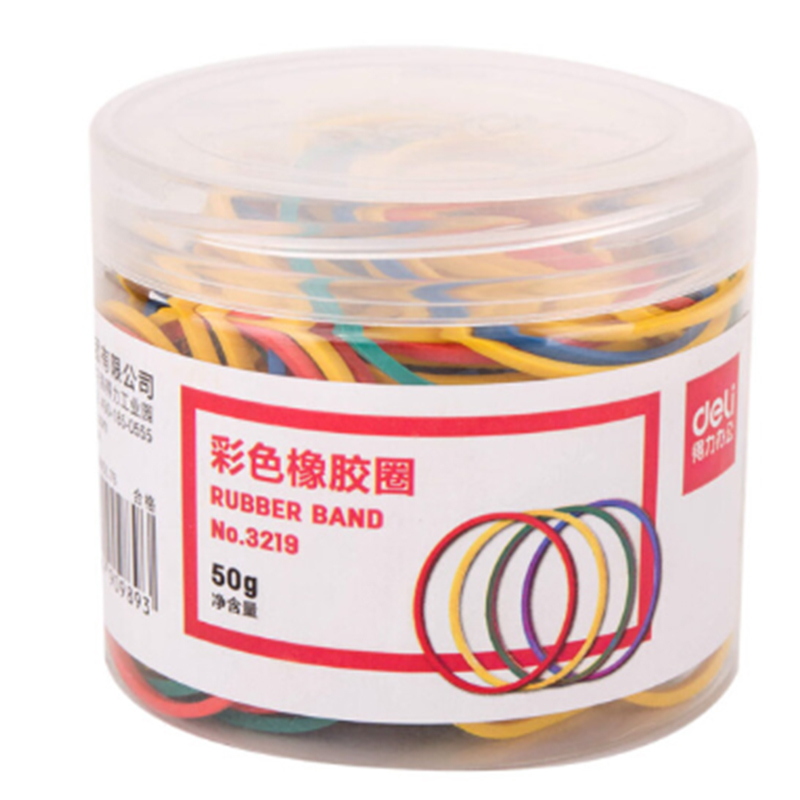 商品名称:得力-3219-彩色橡胶圈-彩色-50g/筒-单位:筒-起订量3筒