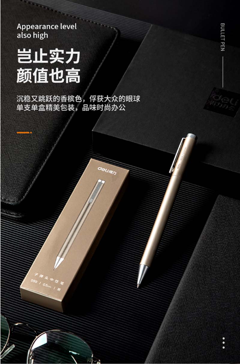 得力-S99-中性笔-0.5mm-子弹头-(1支/盒)-(香槟金)-单位:盒-起订量3盒