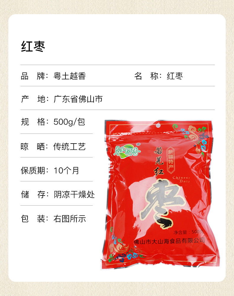 商品名称:粤土越香 新疆若羌红枣500g (枣子 大枣 蜜饯果干 果脯 南北干货 甜羹伴侣) 红枣500g(单位:袋)