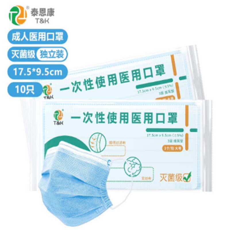 泰恩康 T&K一次性医用口罩灭菌级10只【独立包装】(单位:只)