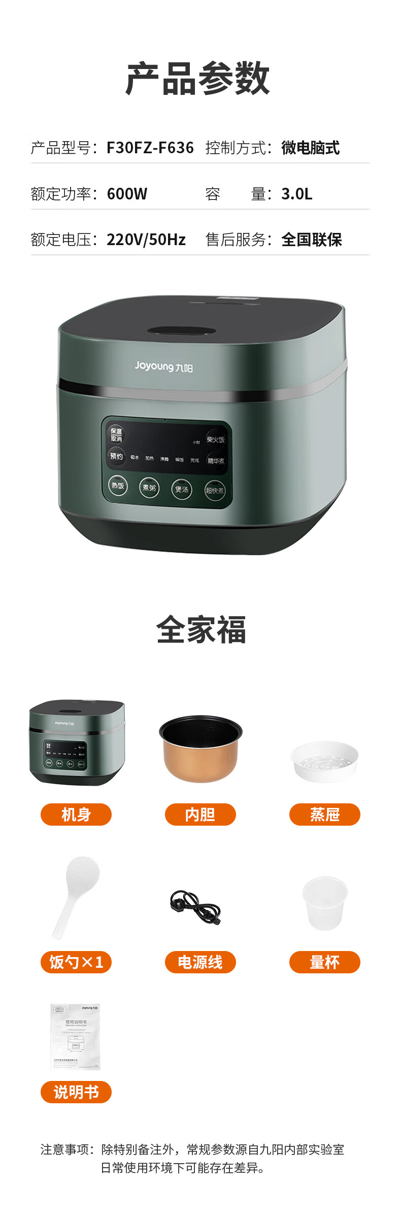 商品名称:九阳(Joyoung)- F30FZ-F636 -迷你智能电饭锅-3L-单位:个
