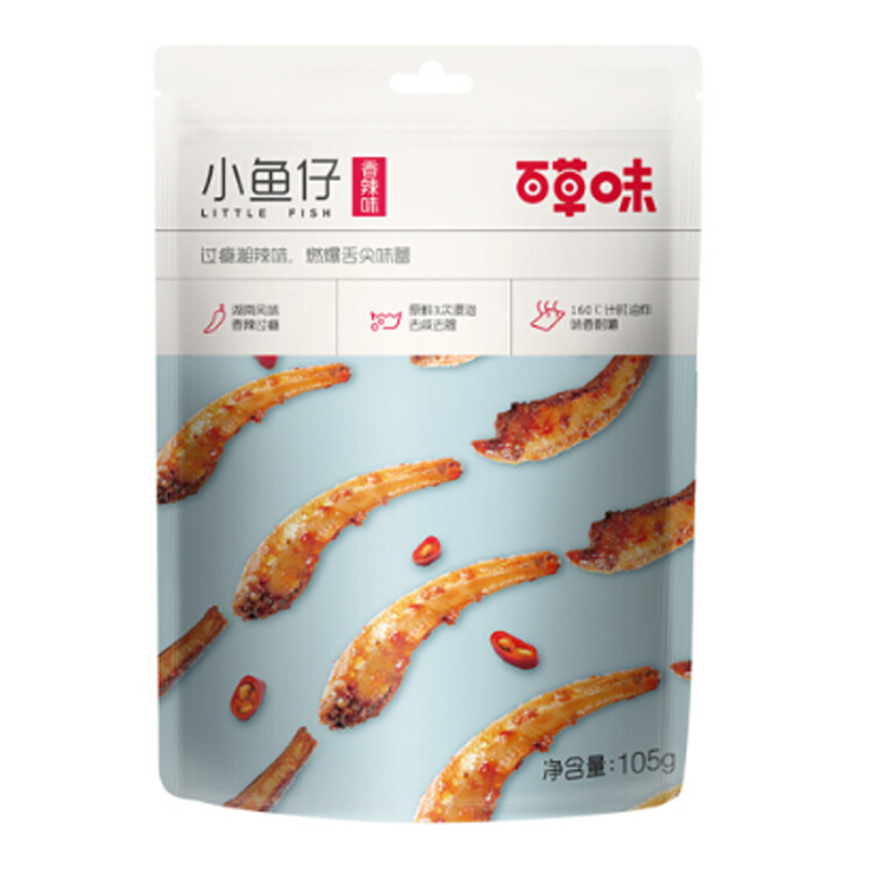 商品名称:百草味 小鱼仔(香辣味)105g*3袋(单位:袋)