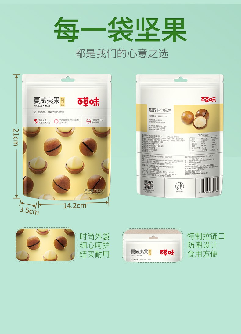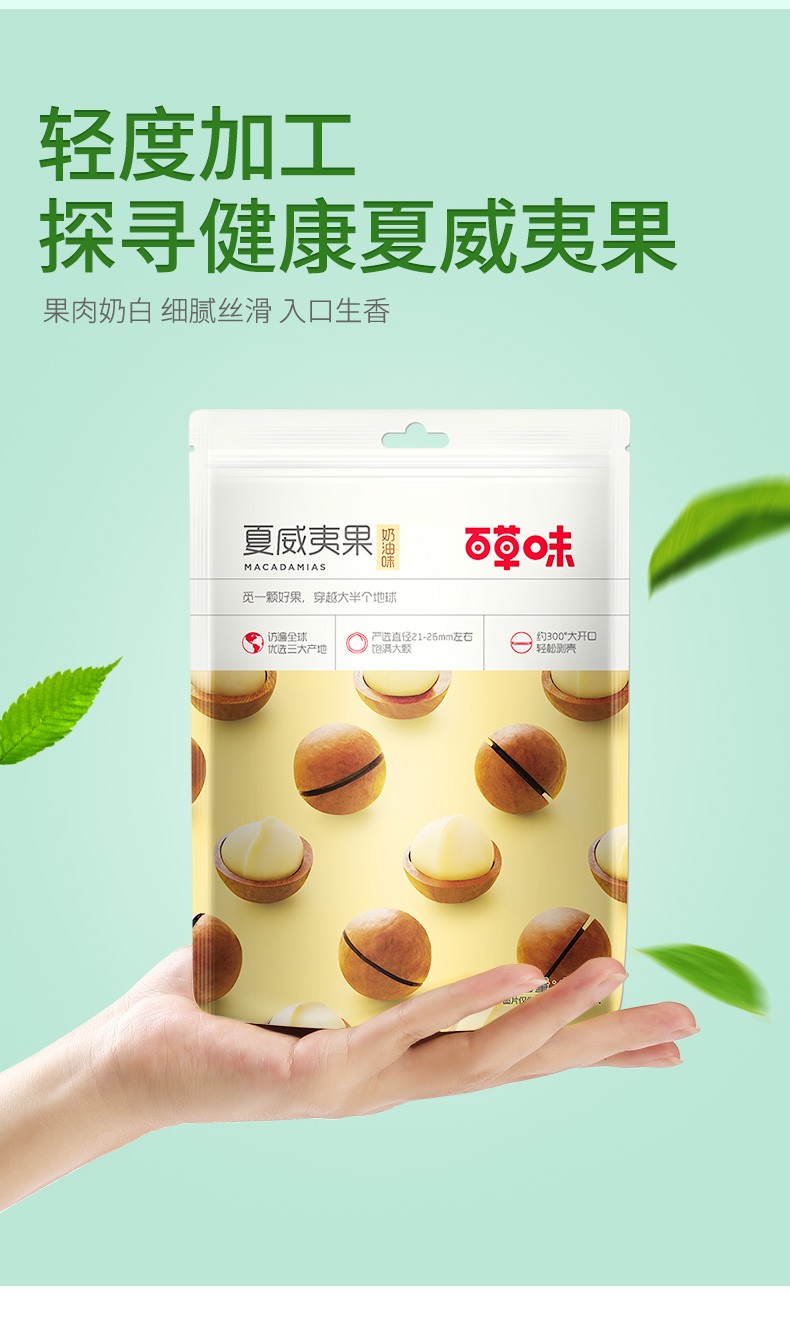 商品名称:百草味 夏威夷果(奶油味)100g*3袋 单位:袋