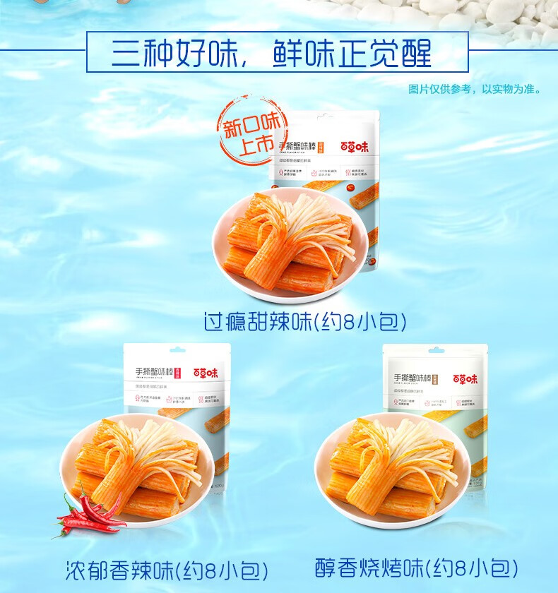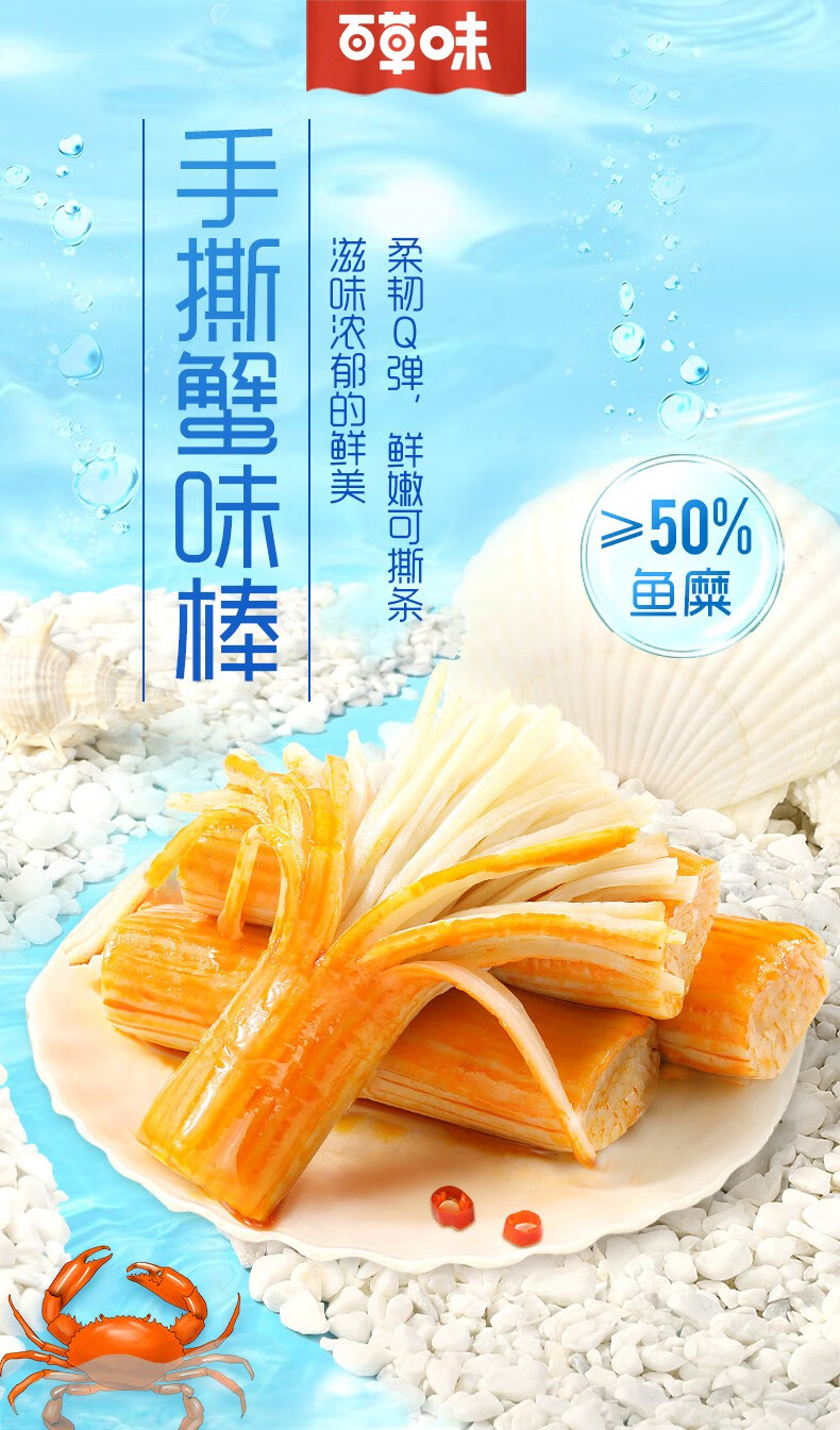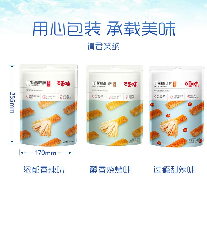 商品名称:百草味 手撕蟹味棒120g 香辣味*3袋 单位:袋