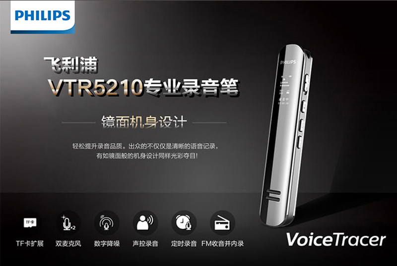 商品名称:飞利浦(PHILIPS)VTR5210 16G 会议采访 数字降噪 双麦克风数码锂电录音笔(单位:个)