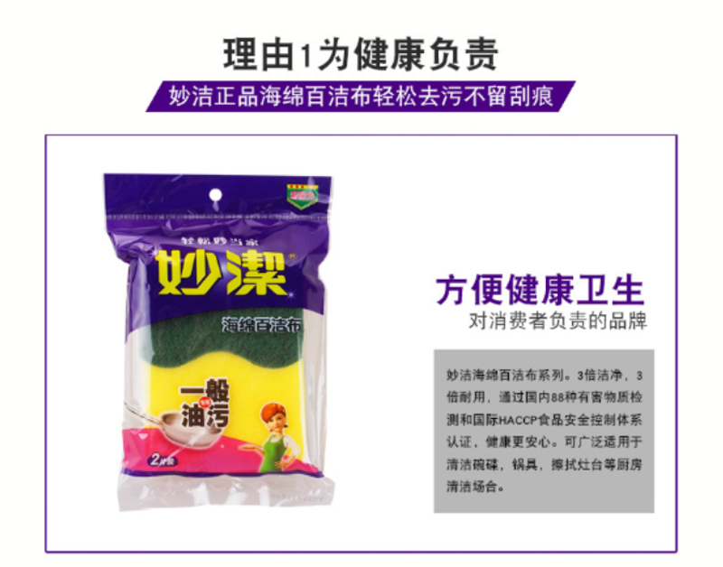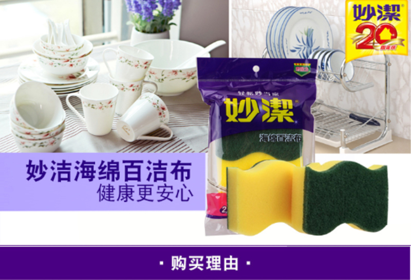 商品名称:妙洁 海绵百洁布 2片装 MHSC2 5包/件(单位:包)