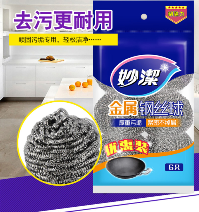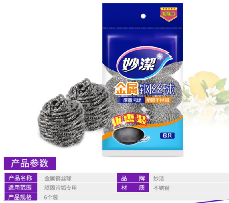 商品名称:妙洁 MHB6 6917751461353 金属钢丝球6颗装 (5袋)(单位:袋)