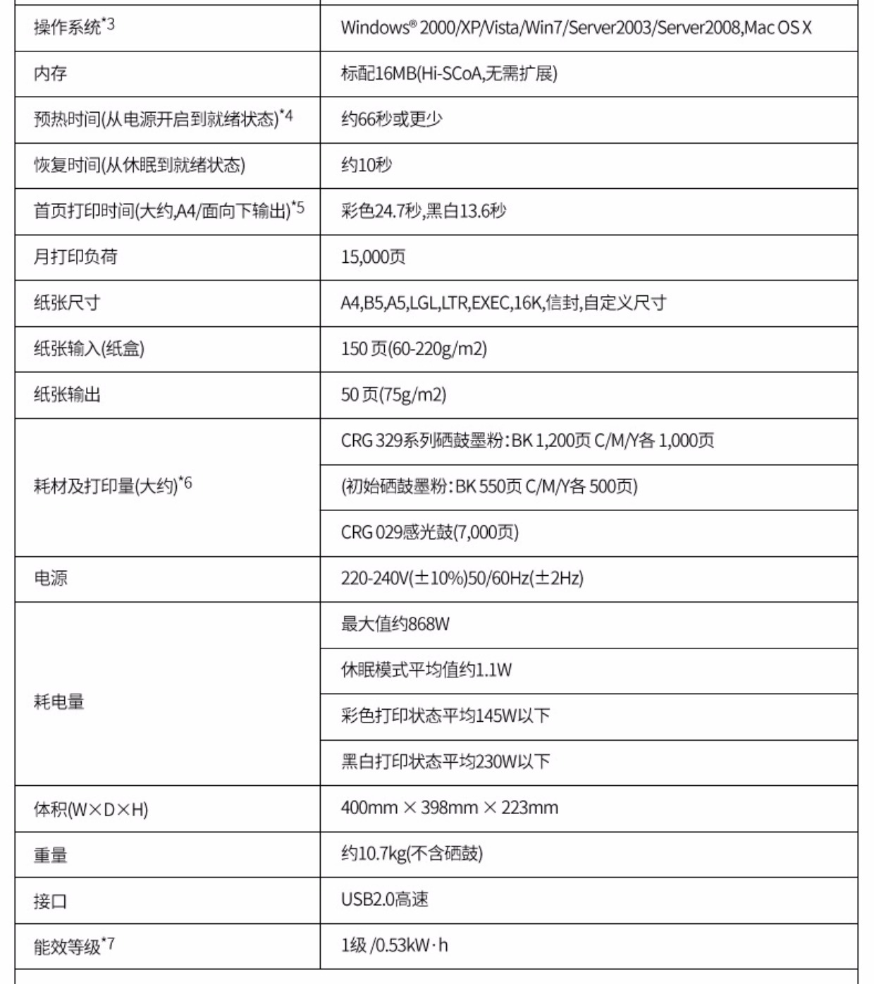 商品名称:佳能/Canon 彩色激光打印机 LBP7010C