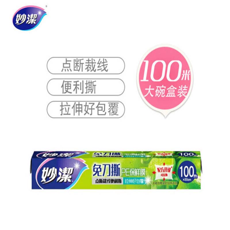 妙洁-免刀撕PE保鲜膜100米大碗经济装-单位:个-起订量10盒