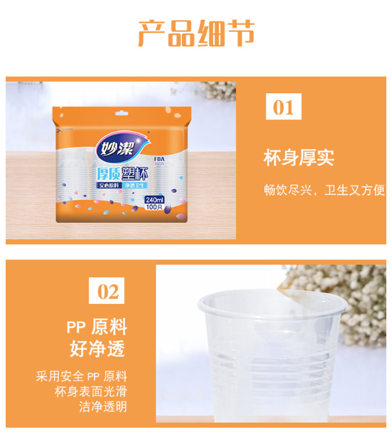 商品名称:妙洁-COOL-酷杯240ml-100只装-单位:个-起订量10包