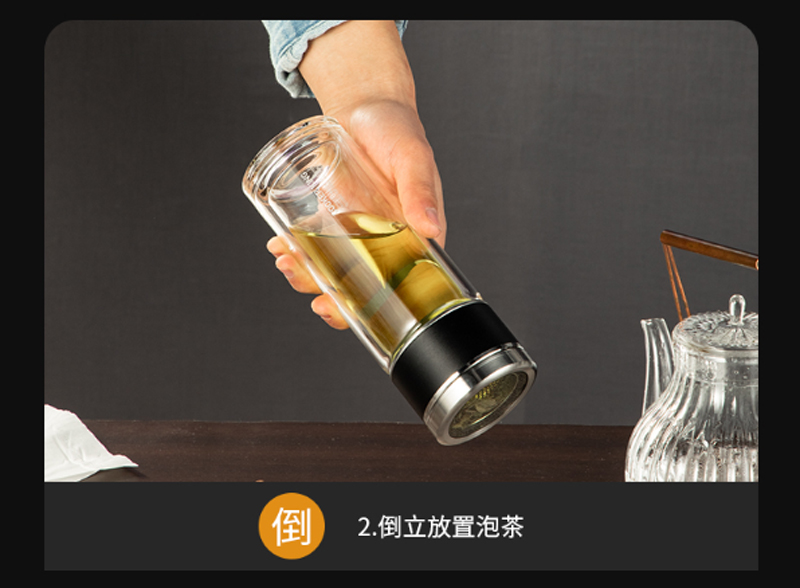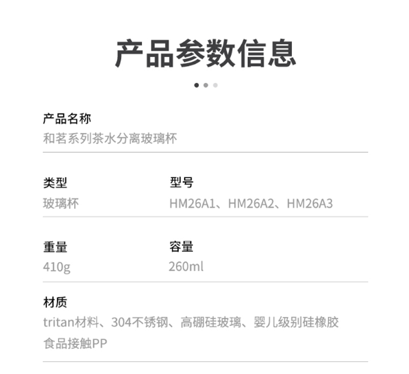 商品名称:炊大皇-HM26A2-和茗茶水分离玻璃杯-260ml-海水蓝-单位:个