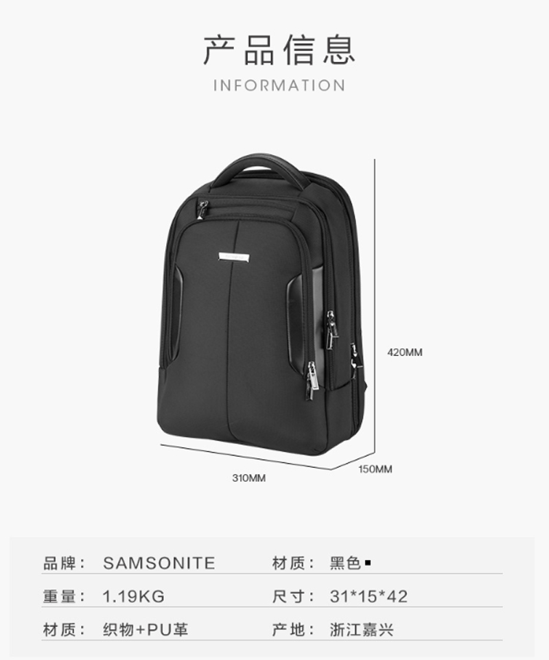 商品名称:新秀丽-BP0*09010-电脑包双肩背包男女书包新品商务系列可挂套-15.6英寸-单位:个