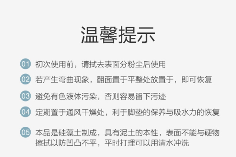 商品名称:绿之源-硅藻泥速干地垫-39*60cm-灰白色-单位:张