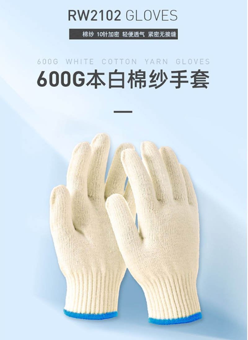 瑞氪维尔-RW2102-棉纱手套劳保手套-10针12副/袋-本白-单位:袋