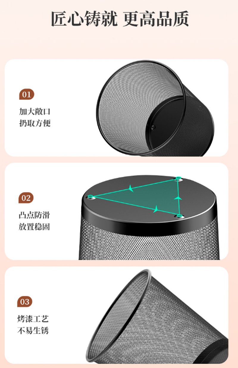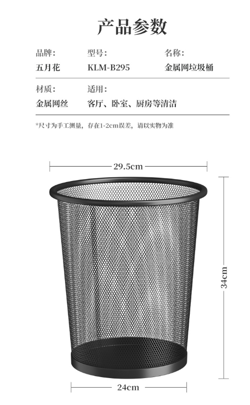 商品名称:五月花-B295-分类垃圾桶-15L超大号φ295mm稳固金属丝网垃圾篓-办公室居家纸篓-黑色-单位:桶-起订量3