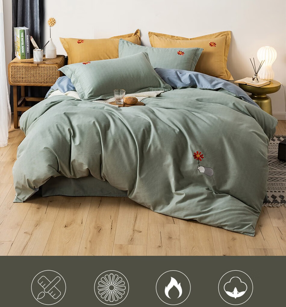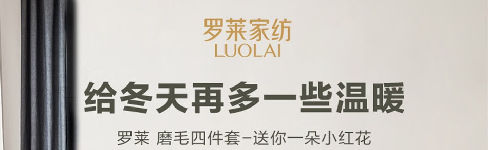 罗莱-LUOLAI-家纺-四件套秋冬保暖磨毛四件套全棉床单被套枕套-床上用品-送你一朵小红花-绛红色-1.8米床(被套220x250cm)-单位:件