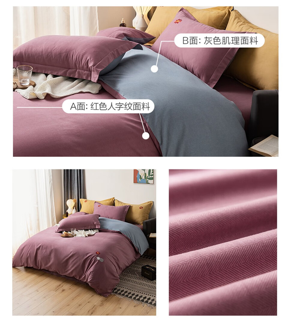 商品名称:罗莱-LUOLAI-家纺-四件套秋冬保暖磨毛四件套全棉床单被套枕套-床上用品-送你一朵小红花-绛红色-1.8米床(被套220x250cm)-单位:件