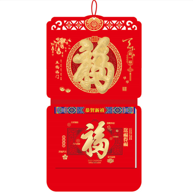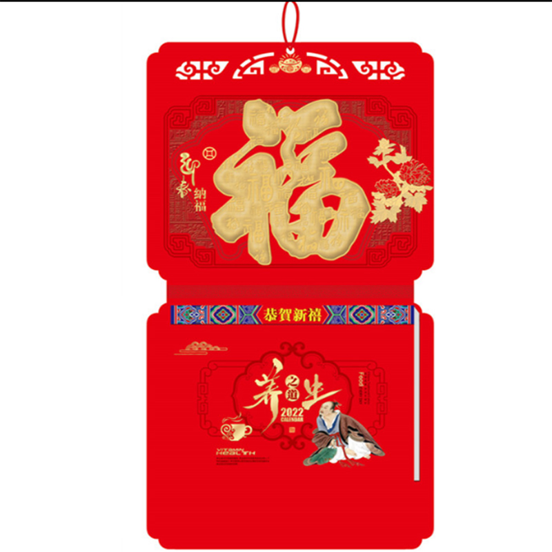 国产 挂历16开中国红浮雕烫金双日历 外围尺寸:61*33cm,内页尺寸:27.8*21cm 内页为70克高白双胶纸共181张 双日历