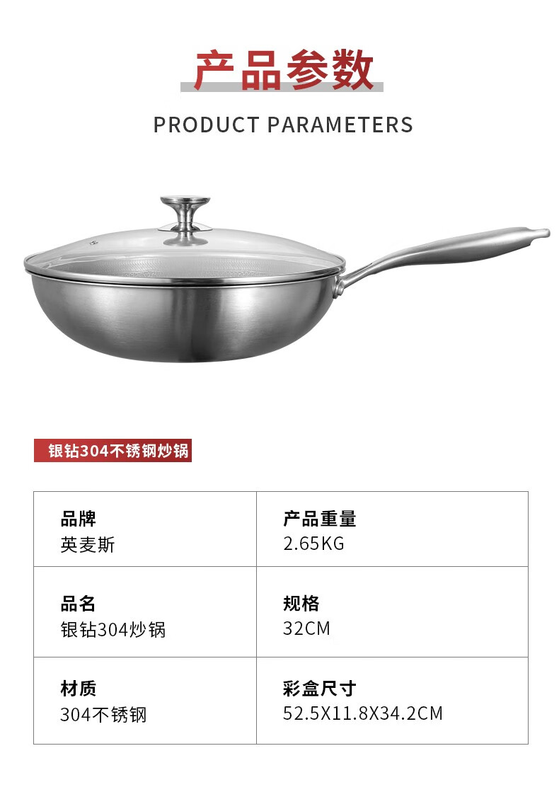商品名称:英麦斯 银钻304炒锅