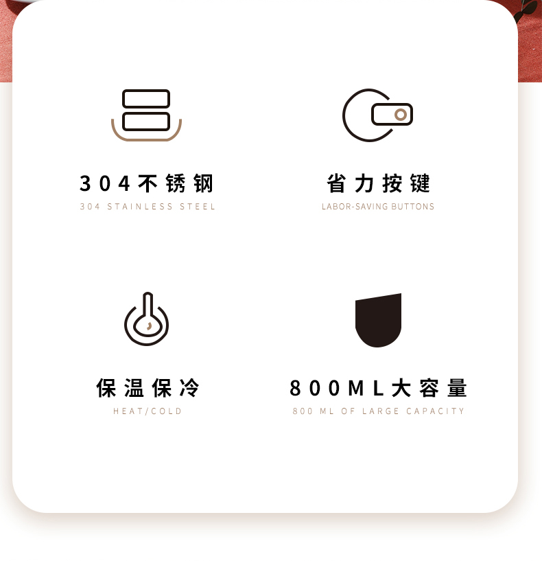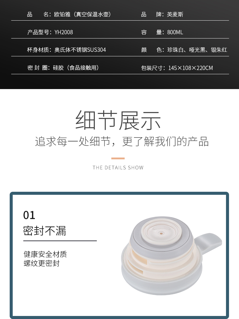 商品名称:英麦斯 欧铂雅(真空保温水壶)YH2008
