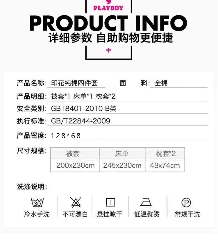 商品名称:花花公子 米兰之恋 200cm*230cm 床品套件四件套