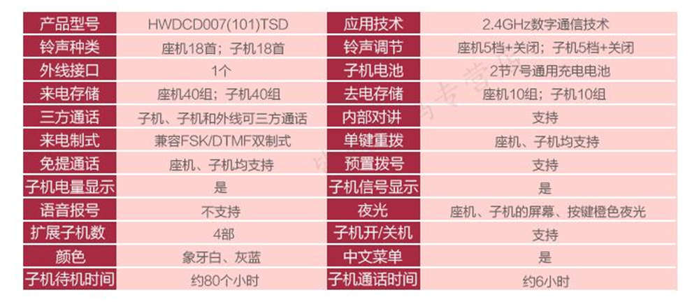 商品名称:步步高 电话子母机一拖一无线移动座机 HWDCD007(101)TSD
