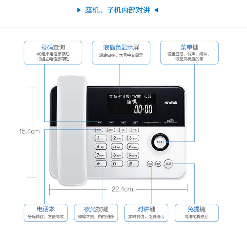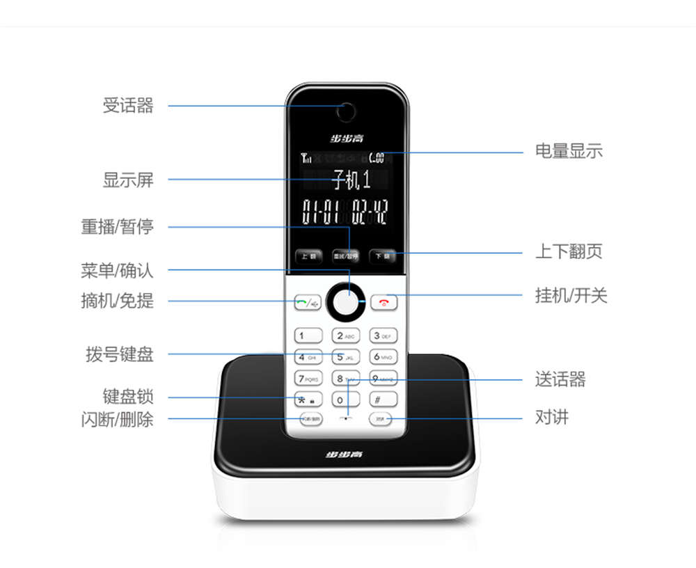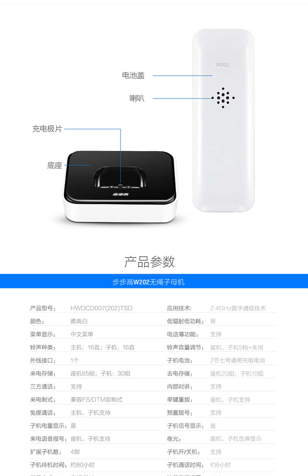 商品名称:步步高 无绳电话子母机 HWDCD007(202)TSD