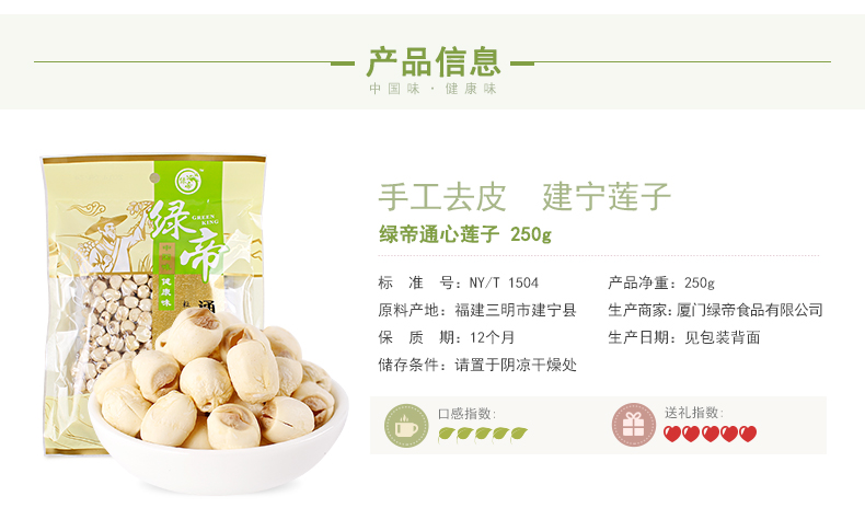 商品名称:绿帝 通心莲子250g