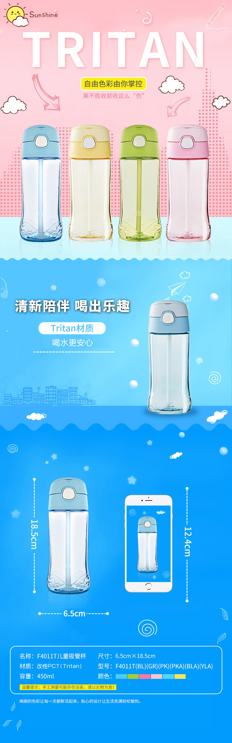 商品名称:膳魔师 Tritan吸管杯TCSQ-450 KT cherry