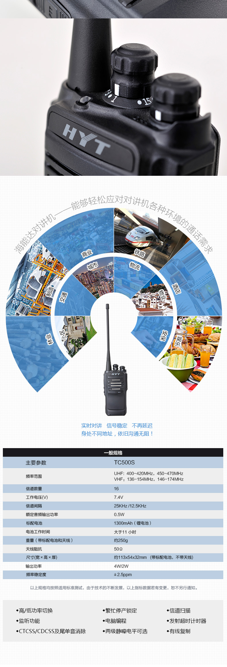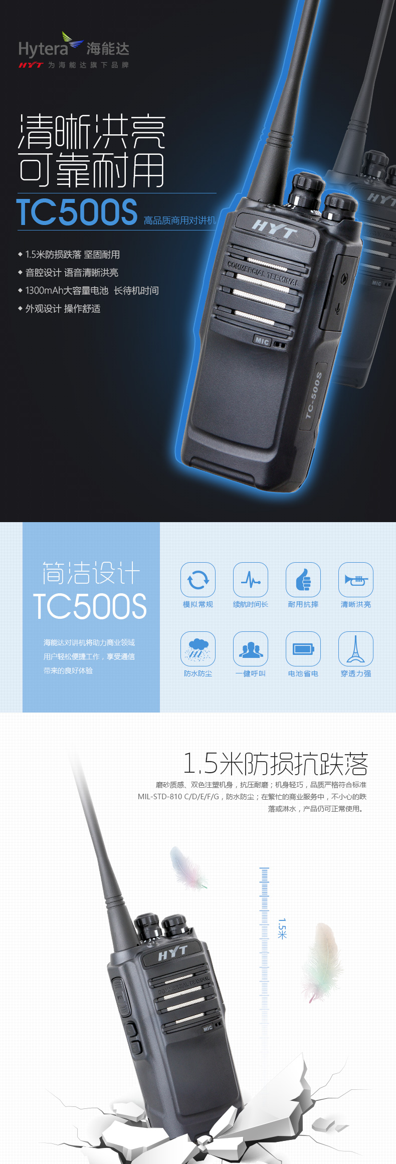 商品名称:海能达/Hytera 对讲机防尘防摔手台 TC500S