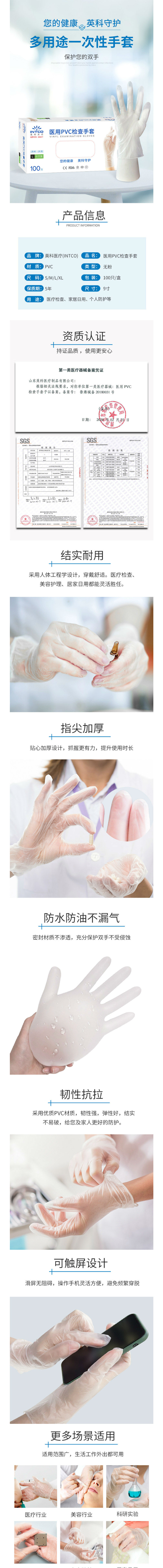商品名称:英科医疗(INTCO)-无粉标准型-一次性医用PVC检查手套-透明色-M码(100只/盒)-单位:盒-起订量10盒