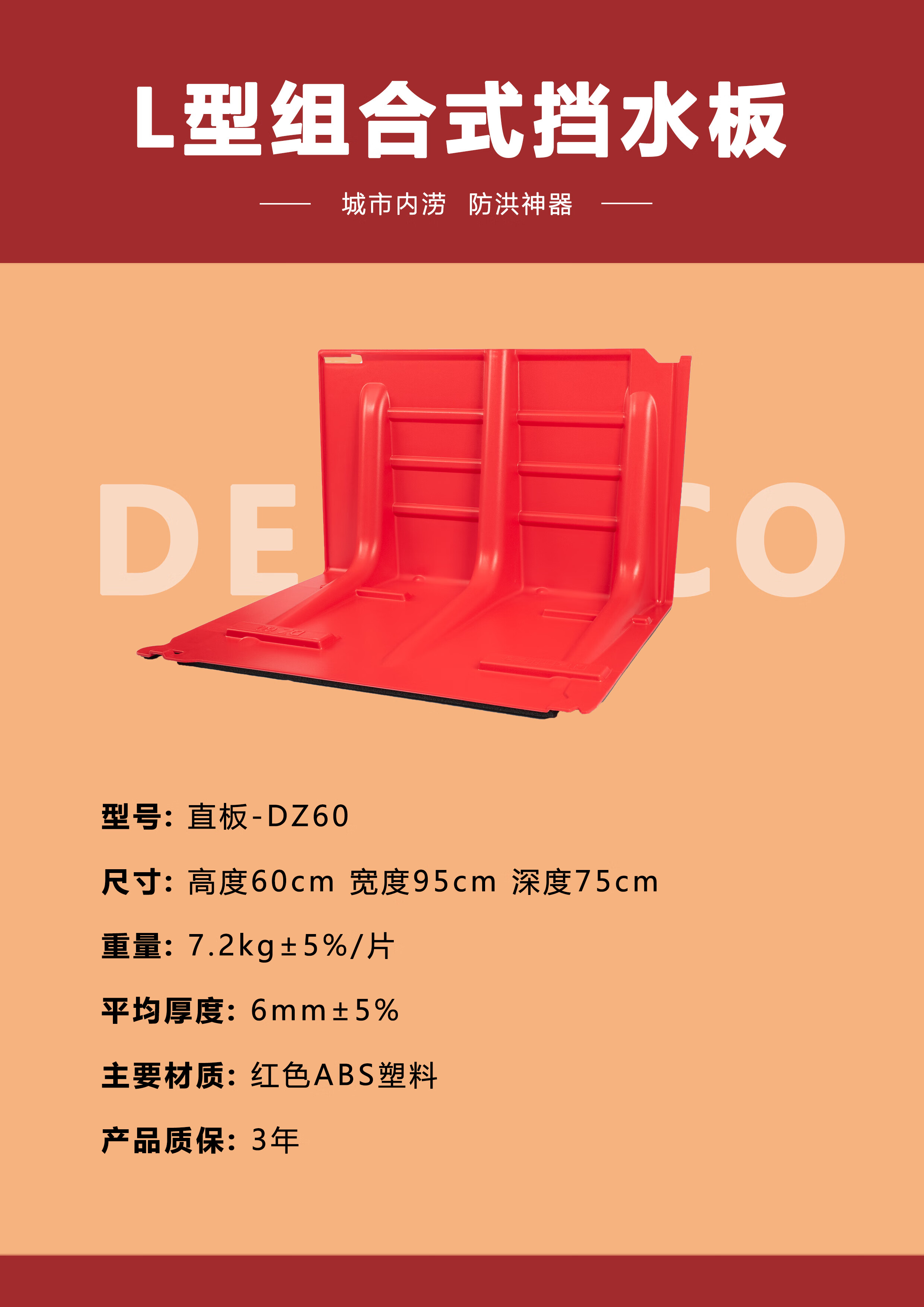 商品名称:德尼尔科 可移动防洪挡板车库仓库地铁口商场防水防汛 DZ60防洪板直板 单位:块