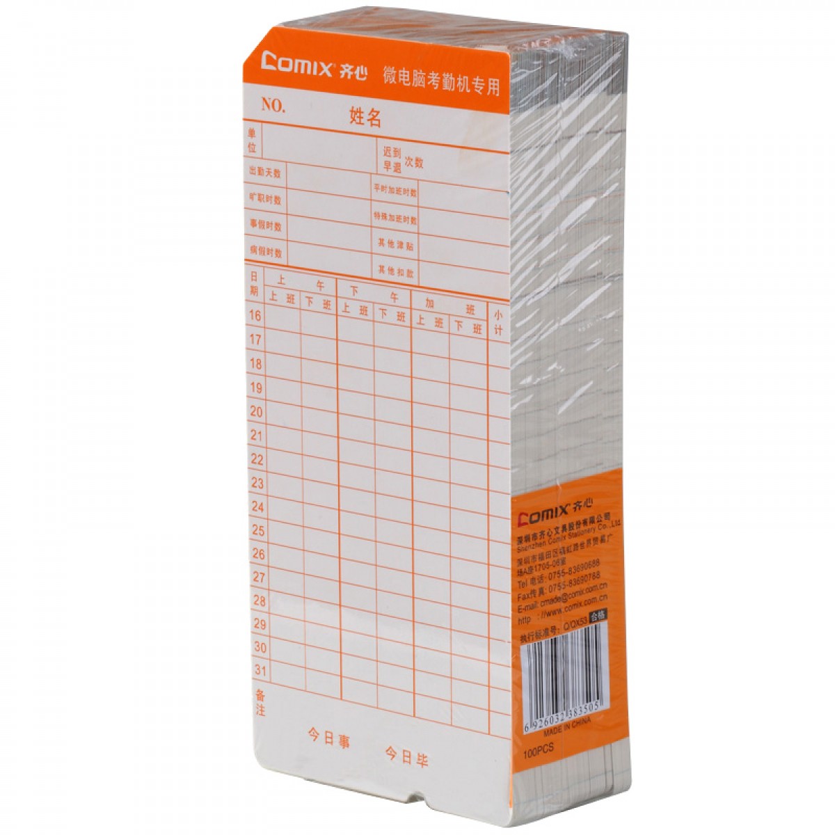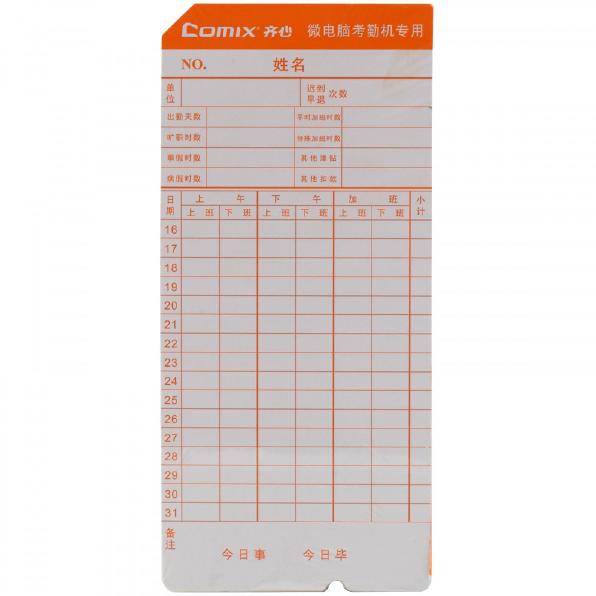 齐心 F3505 考勤卡纸 打卡纸 考勤钟纸卡 100张/包 通用考勤卡
