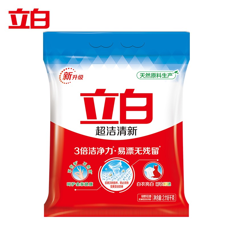 立白 超洁洗衣粉2118g/袋 家庭装儿童衣物适用 无磷型 三倍洁净力 低泡易漂洗 超洁清新温和护手(单位:袋) 起订量:4袋/箱