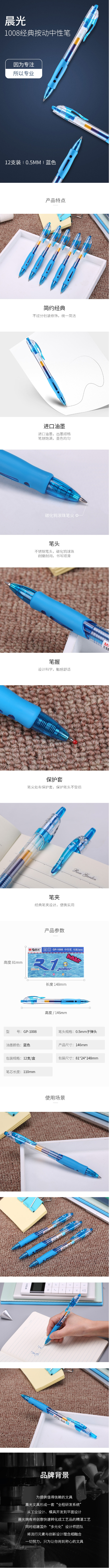 商品名称:晨光 GP-1008 按动中性笔 0.5mm 蓝色 12支/盒 单位:盒