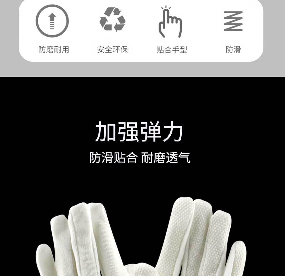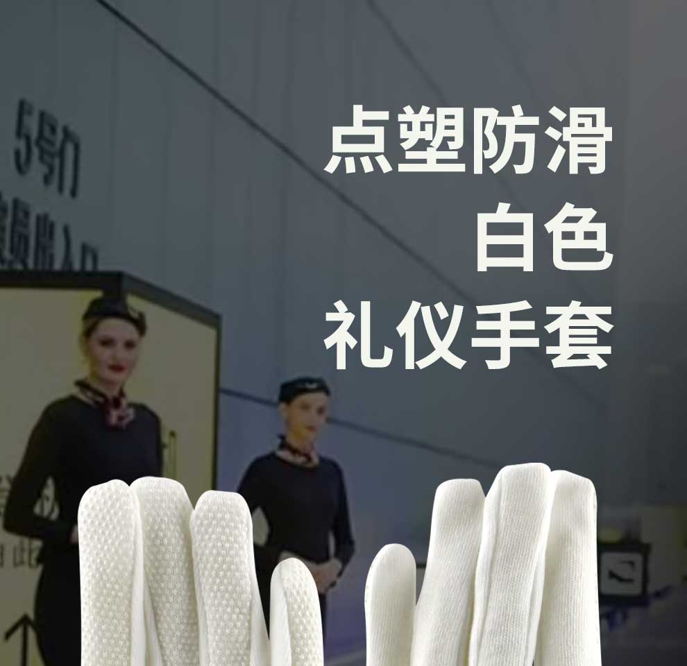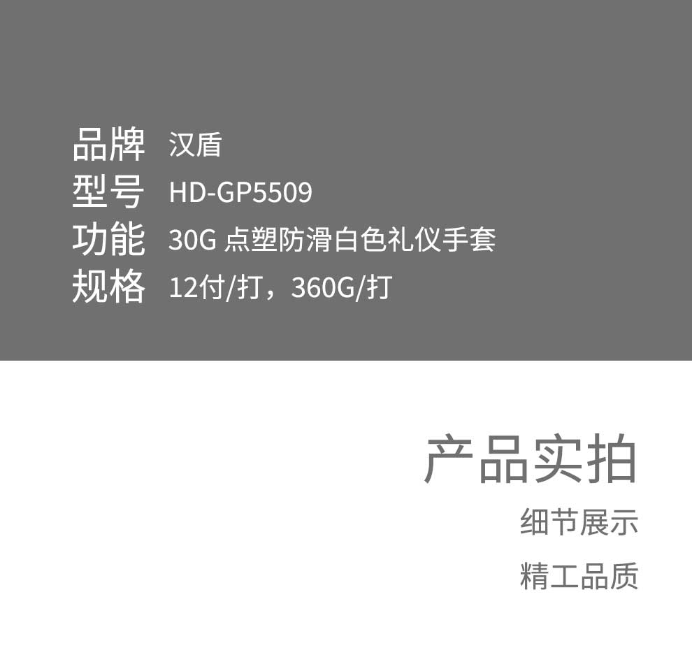 商品名称:汉盾 HD-GP5509 纯棉 30g点塑防滑白色礼仪手套 (10付/打,300g/打)