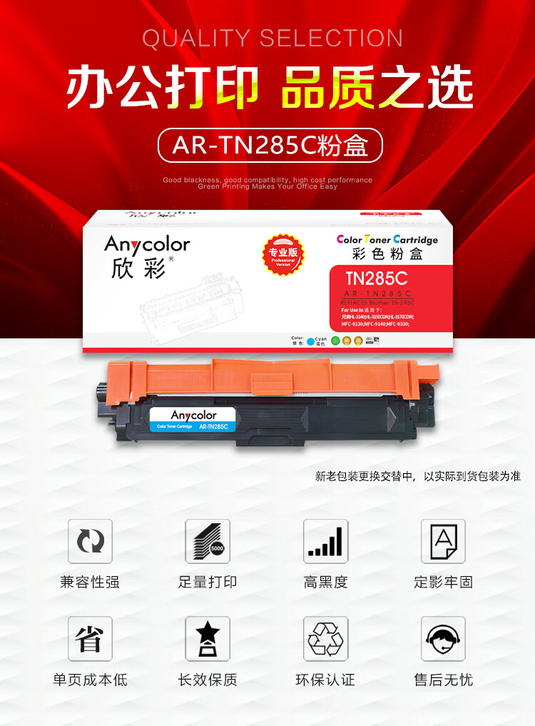 商品名称:欣彩 Anycolor AR-TN285C 粉盒 蓝色 2200页 适用兄弟3170CDW 3150CDN 9020CDN 计价单位:支