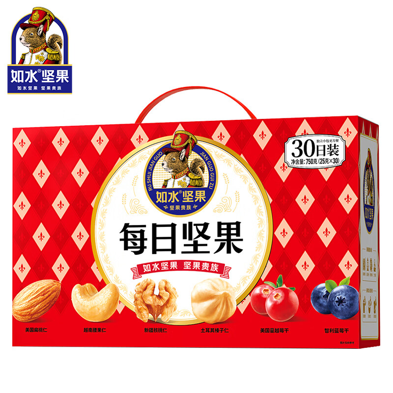 如水 每日坚果礼盒750g年货经典款(25g*30袋)新年混合干果休闲零食 单位:盒