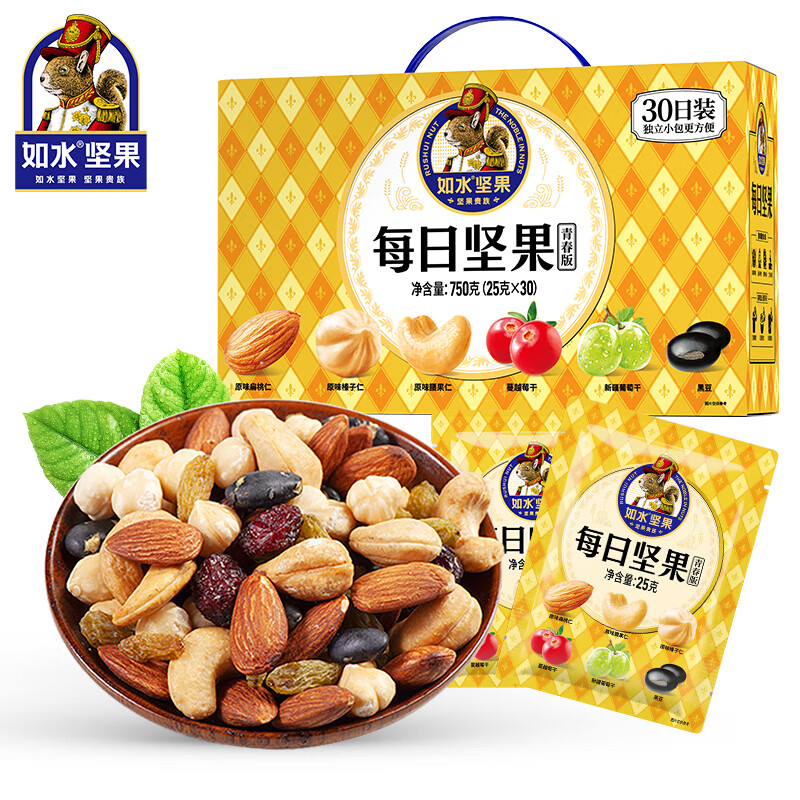 如水 每日坚果750g(青春版)混合坚果果仁休闲零食 单位:盒