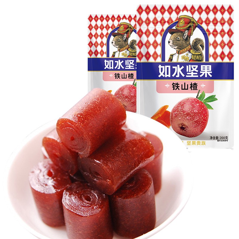 商品名称:如水 铁山楂400g(200g*2袋) 日常果盘小吃 酸酸甜甜山楂卷 单位:组