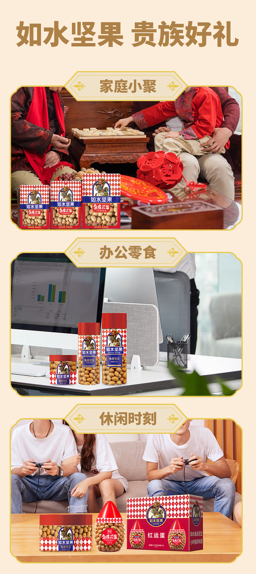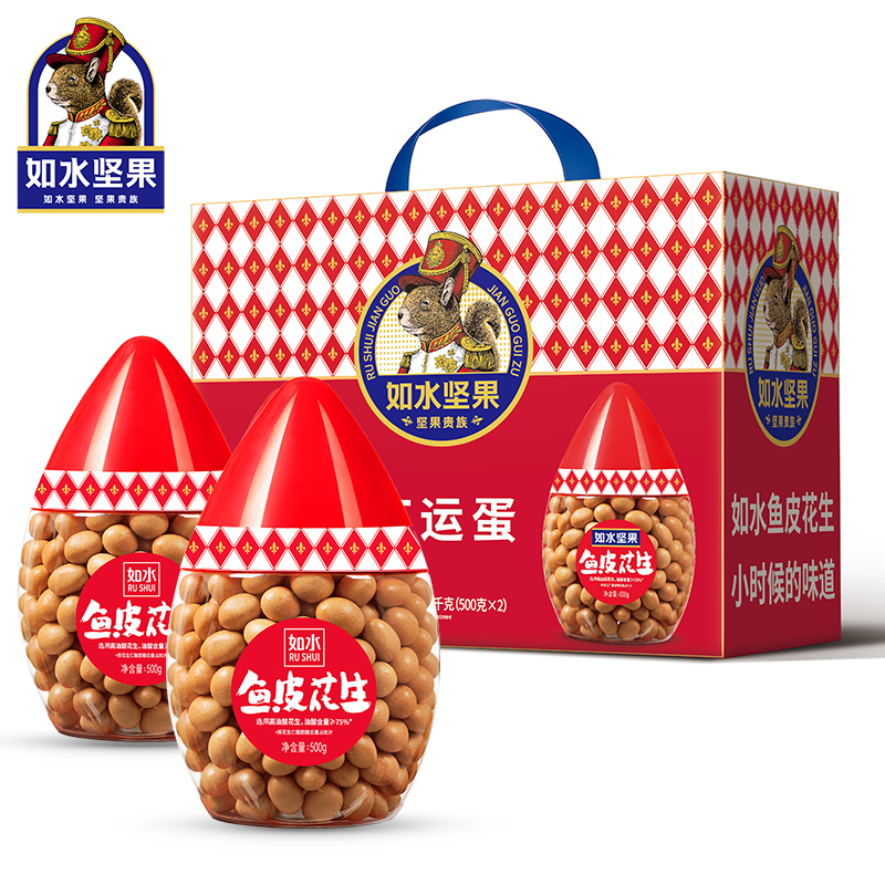 商品名称:如水 鱼皮花生500g×2桶鸿运蛋礼盒版 小时候的味道 休闲零食年货端午送礼 单位:盒