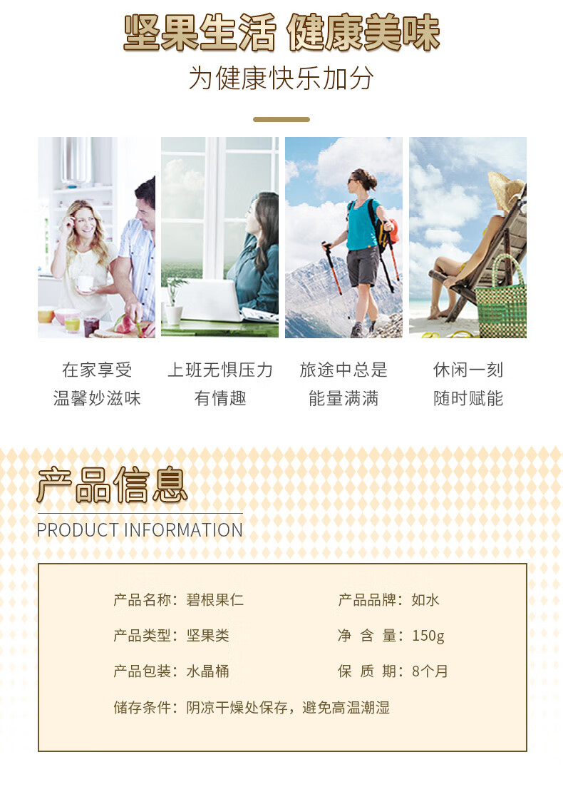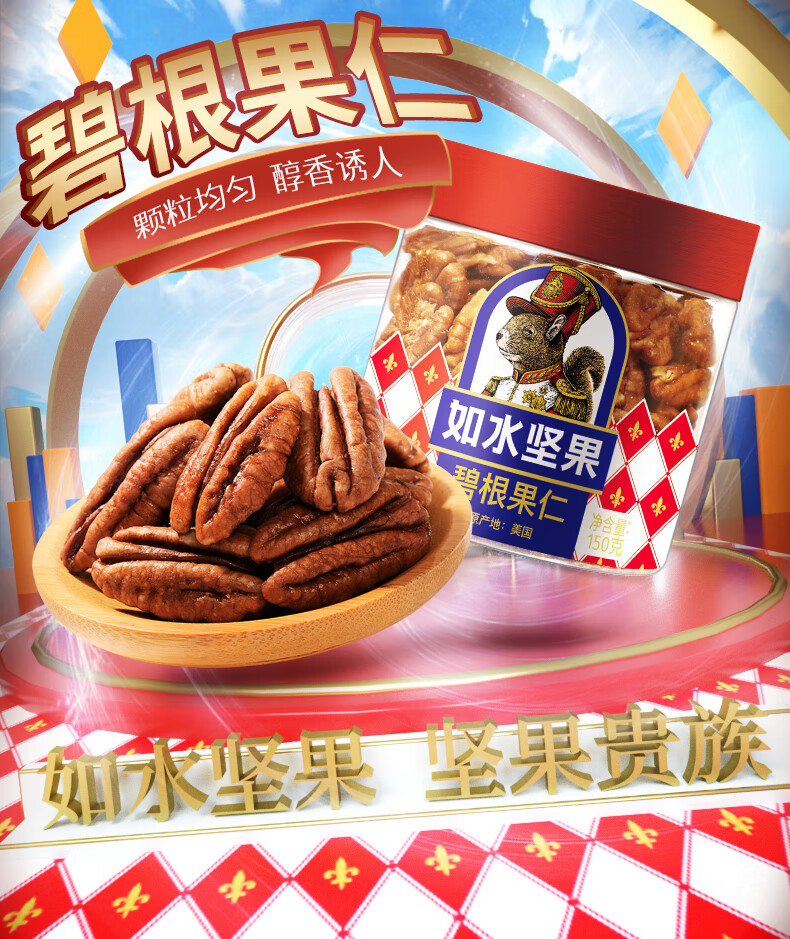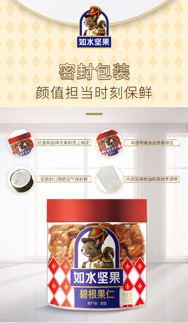 商品名称:如水 碧根果仁150g/罐 长寿果仁烘焙熟制每日坚果 免手剥休闲零食 3罐起订