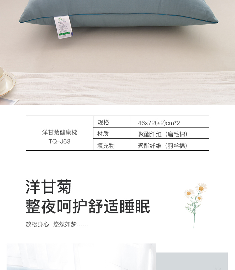 商品名称:天琴-TQ-J63-洋甘菊健康对枕 46×72(±2)cm*2 磨毛棉-单位:对
