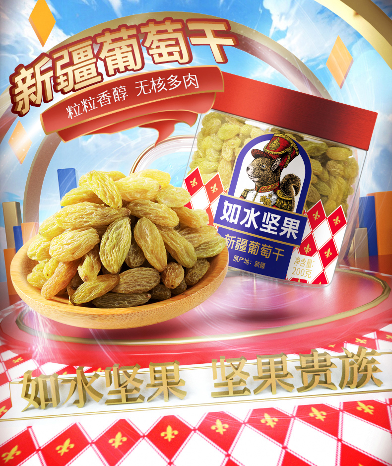 商品名称:如水-新疆葡萄干-200g/罐-单位:罐-起订量3罐