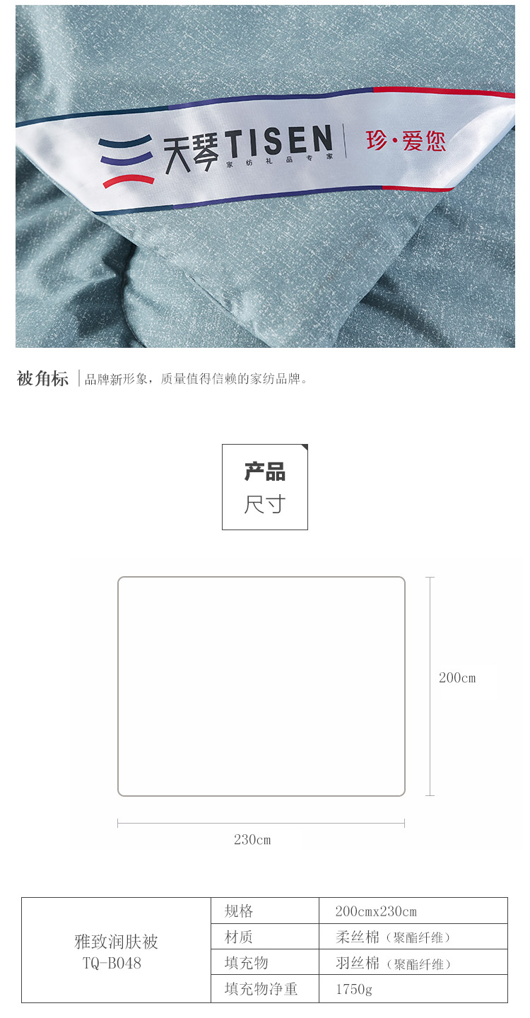 商品名称:天琴TQ-B048雅致润肤被 200x230cm 羽丝棉-单位:床