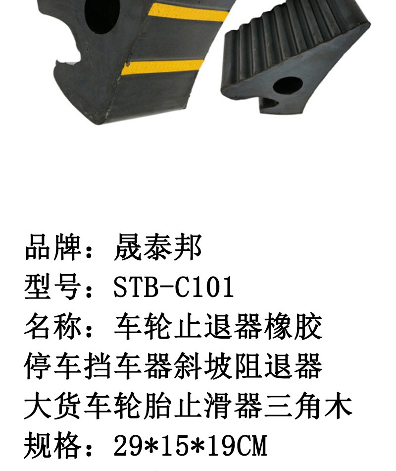 商品名称:晟泰邦-STB-C101车轮止退器橡胶停车挡车器斜坡阻退器大货车轮胎止滑器三角木29*15*19CM 单位:个 4个起订