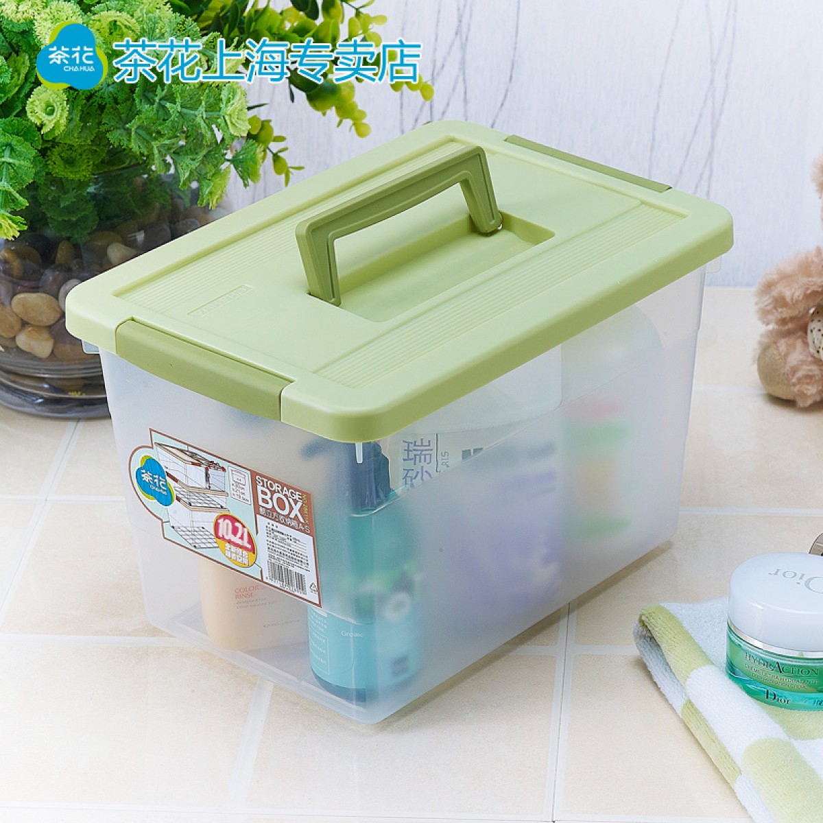 商品名称:茶花 塑料收纳盒把手收纳箱小号有盖透明整理箱子百纳箱储物箱手提
