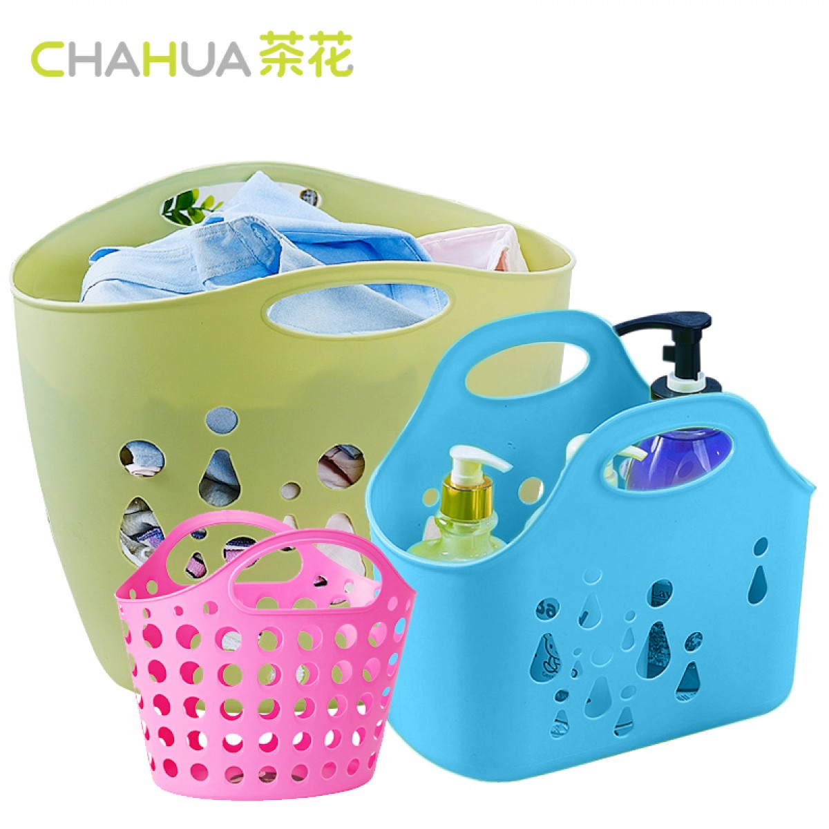 商品名称:茶花洗澡篮子沐浴手提蓝大小号洗浴收纳框篮浴室洗漱浴筐脏衣篮