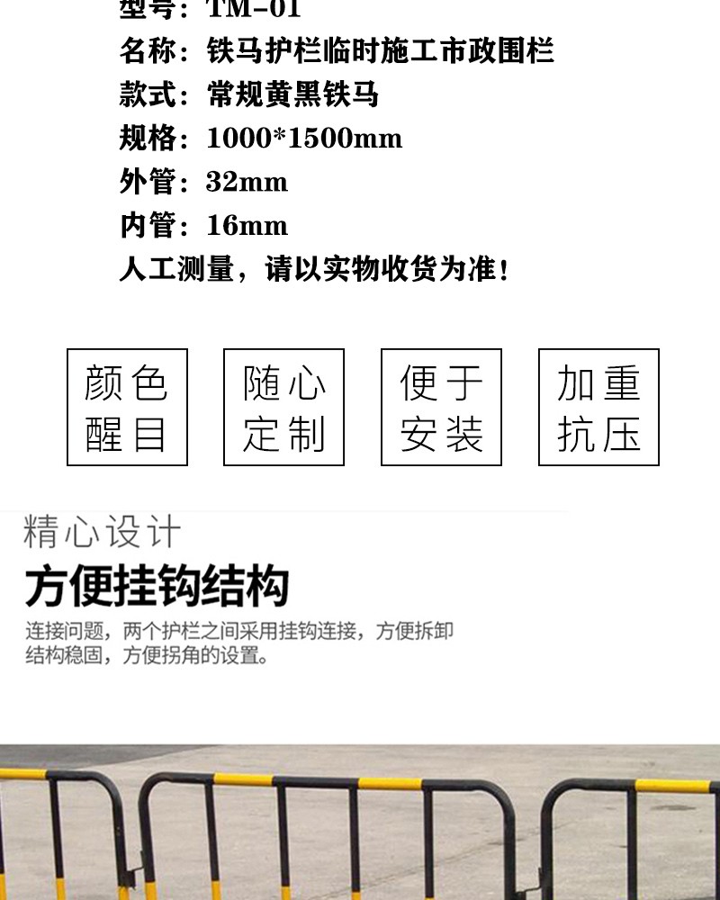 商品名称:晟泰邦 TM-01 铁马护栏临时施工市政围栏 常规黄黑铁马1000*1500